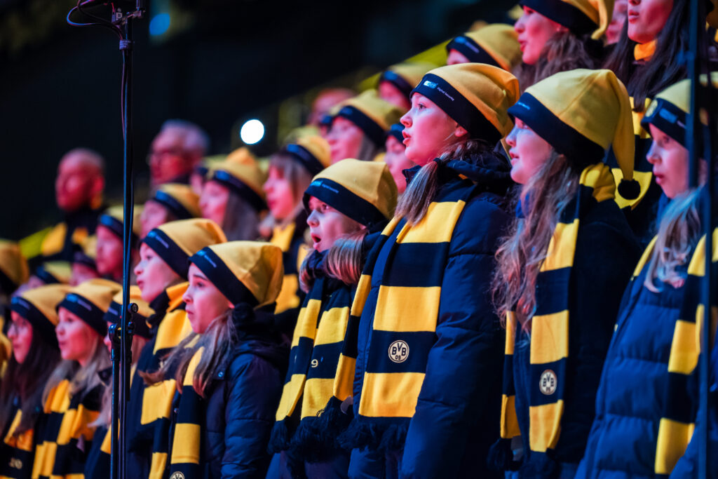 Beim diesjährigen Weihnachtssingen des BVB darf der Konzertchor am 08. Dezember mitwirken. Gesungen werden bei diesem großen Mitsing-Event verschiedene Weihnachtslieder, die zum Teil extra für diesen Tag arrangiert wurden. Mehr als 70.000 Leute im Publikum singen zusammen mit verschiedenen Künstlern und dem Konzertchor der Akademie für Gesang unter dem Motto „Dortmund singt Weihnachtslieder“ und dabei erstrahlt der Signal Iduna Park im weihnachtlichen Glanz und schafft so eine unvergessliche Atmosphäre. Gemeinsam teilen alle die Vorfreude auf das bevorstehende Weihnachtsfest.
